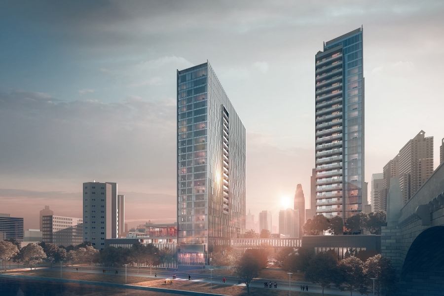 Riverwalk is a new construction, mixed-use community on one of the last remaining parcels available for development along Philadelphia’s Schuylkill River waterfront. Designed by esteemed architecture firm Gensler, the property consists of two soaring glass-skinned residential towers at 60 N. 23rd Street and 2301 JFK Boulevard connected by a pedestrian bridge passing over a walkway and driveway.