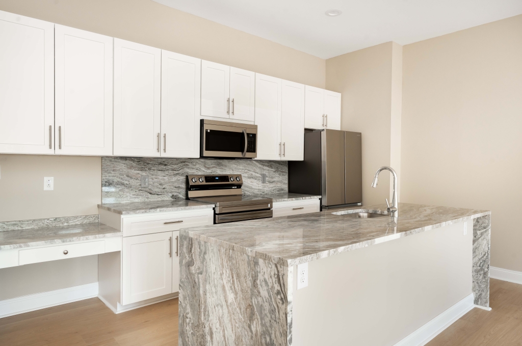 - Modern kitchens with stainless steel appliances, granite countertops, and breakfast bar