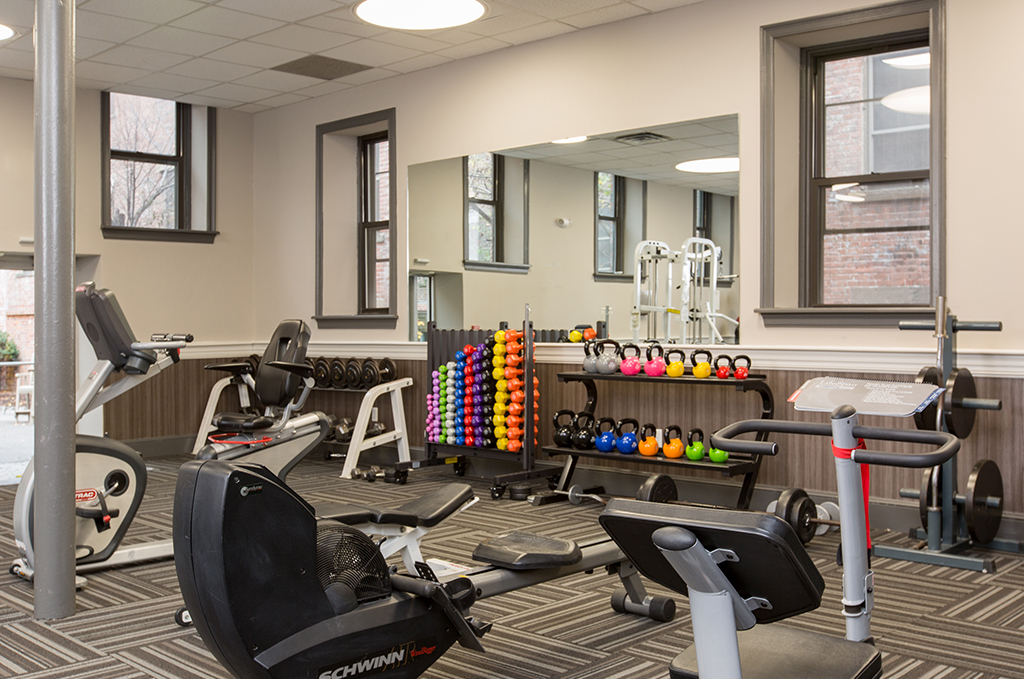 - State-of-the-art fitness center with flatscreen TV, free weights, and balance balls