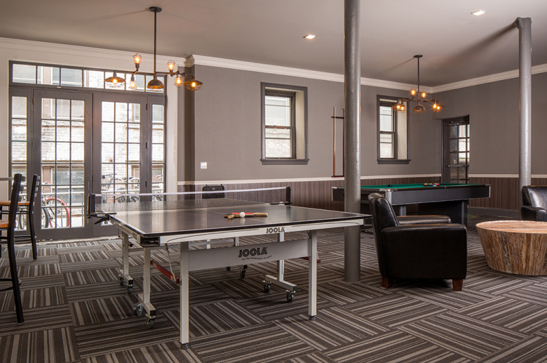 - Resident lounge with billiards, ping pong, shuffleboard, and more